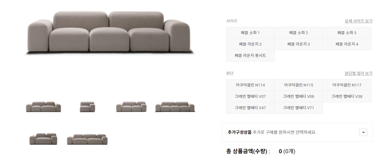 실제로 보았을때도 디자인이 너무 예뻐 고민이 많이 되었습니다. 특히 이 페블소파의 장점은 모듈이 가능하다는 것 입니다.