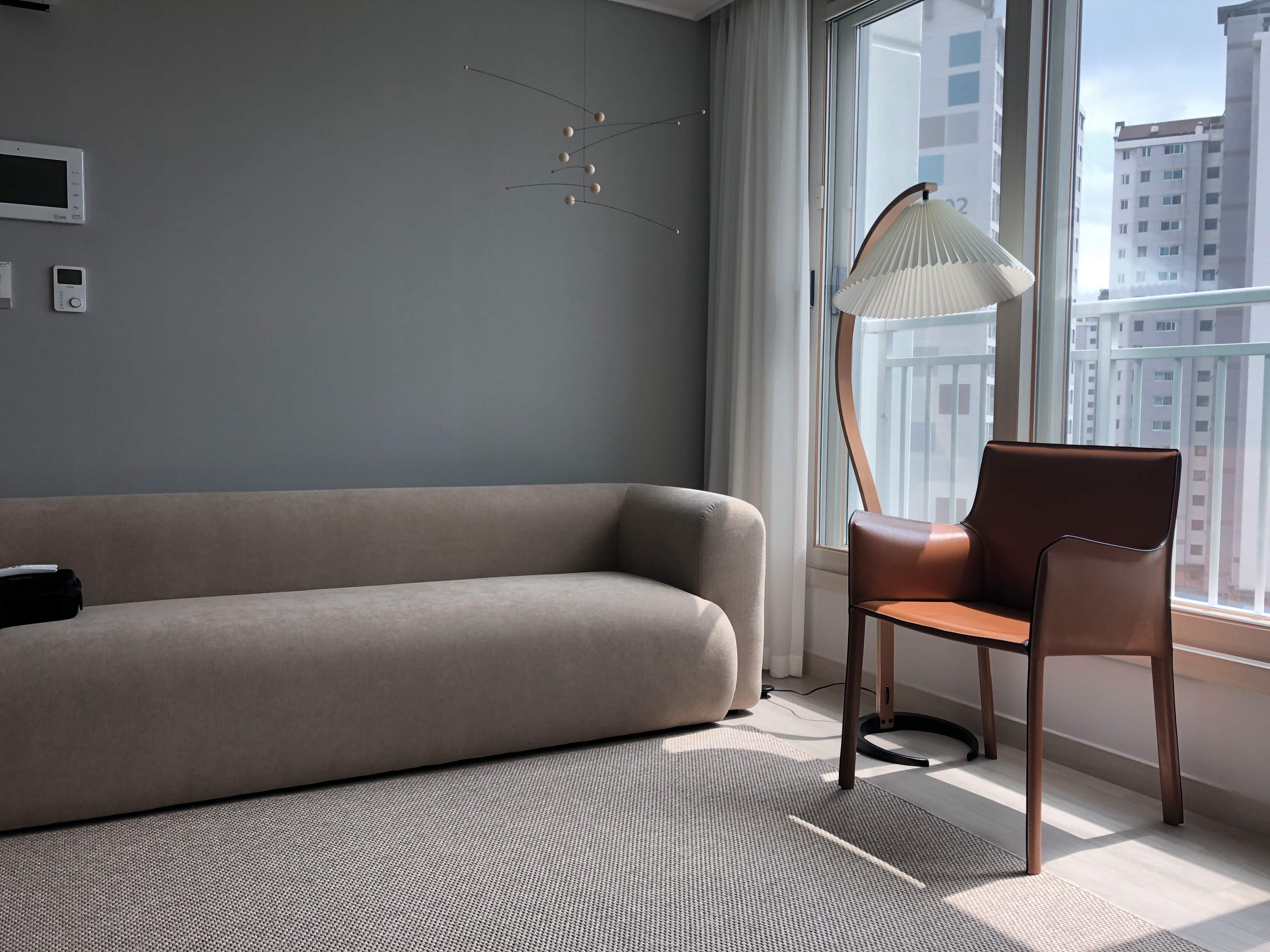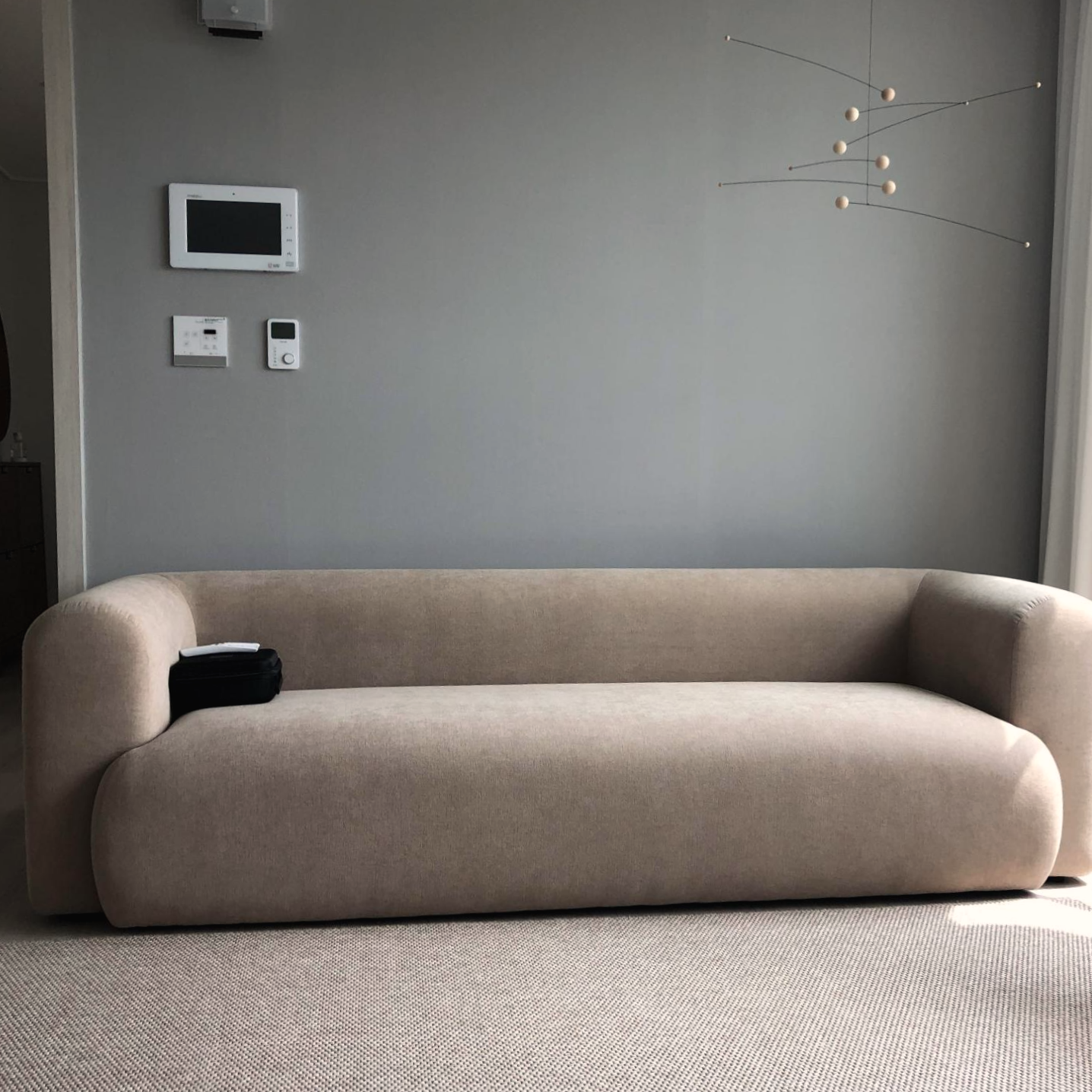저희 집에 배치한 매스 소파입니다. 빛에 따라 색상은 밝기도 하고 어둡게도 보이는 점 참고해주시길 바랍니다.