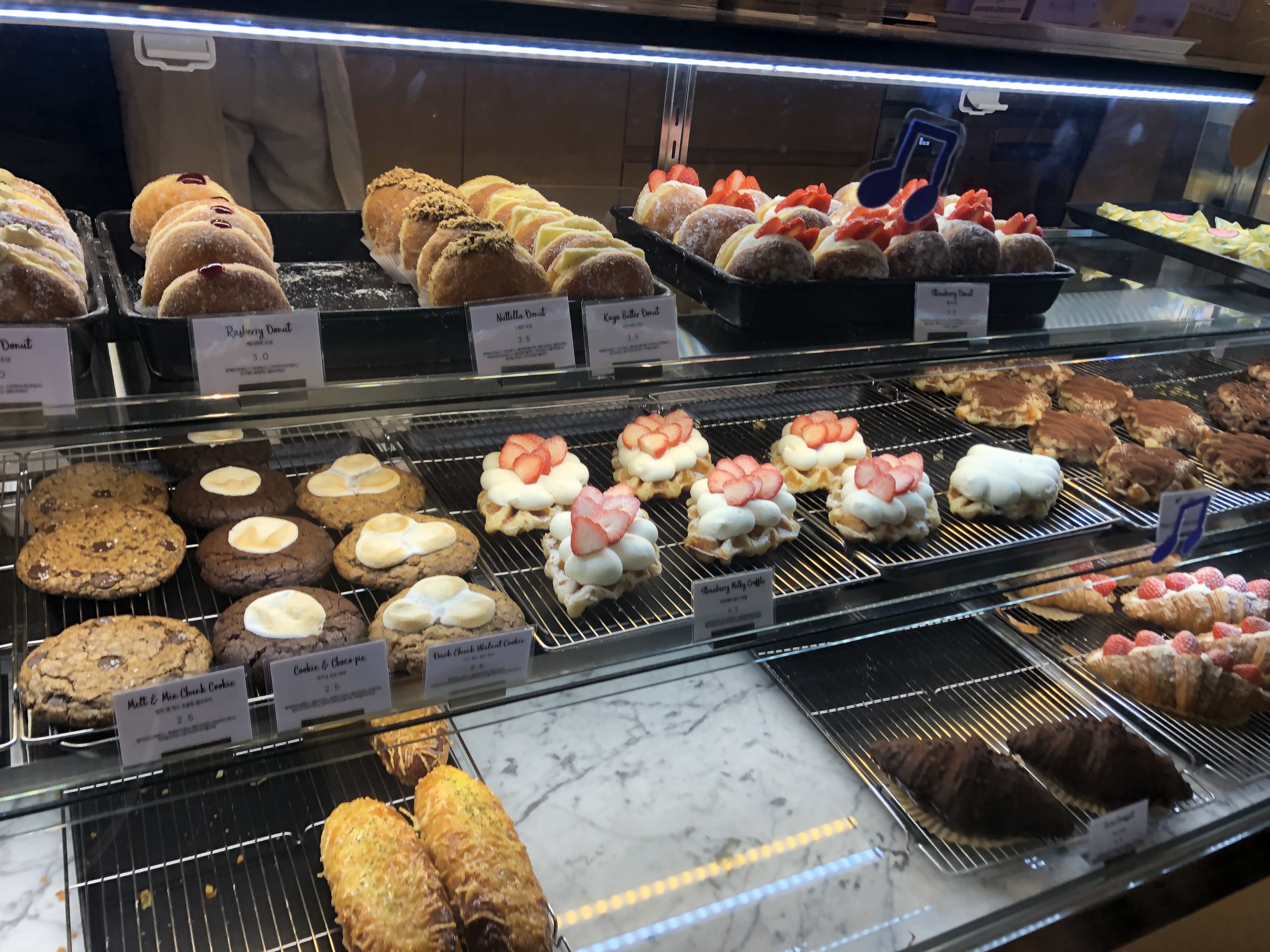 맛의종류는 지점마다 조금씩 다르다고 합니다. 제가 간 석촌호수점에는 바닐라, 딸기 크림, 얼그레이, 누텔라, 카야 버터 등 여러 가지 맛의 도넛들이 있었습니다.