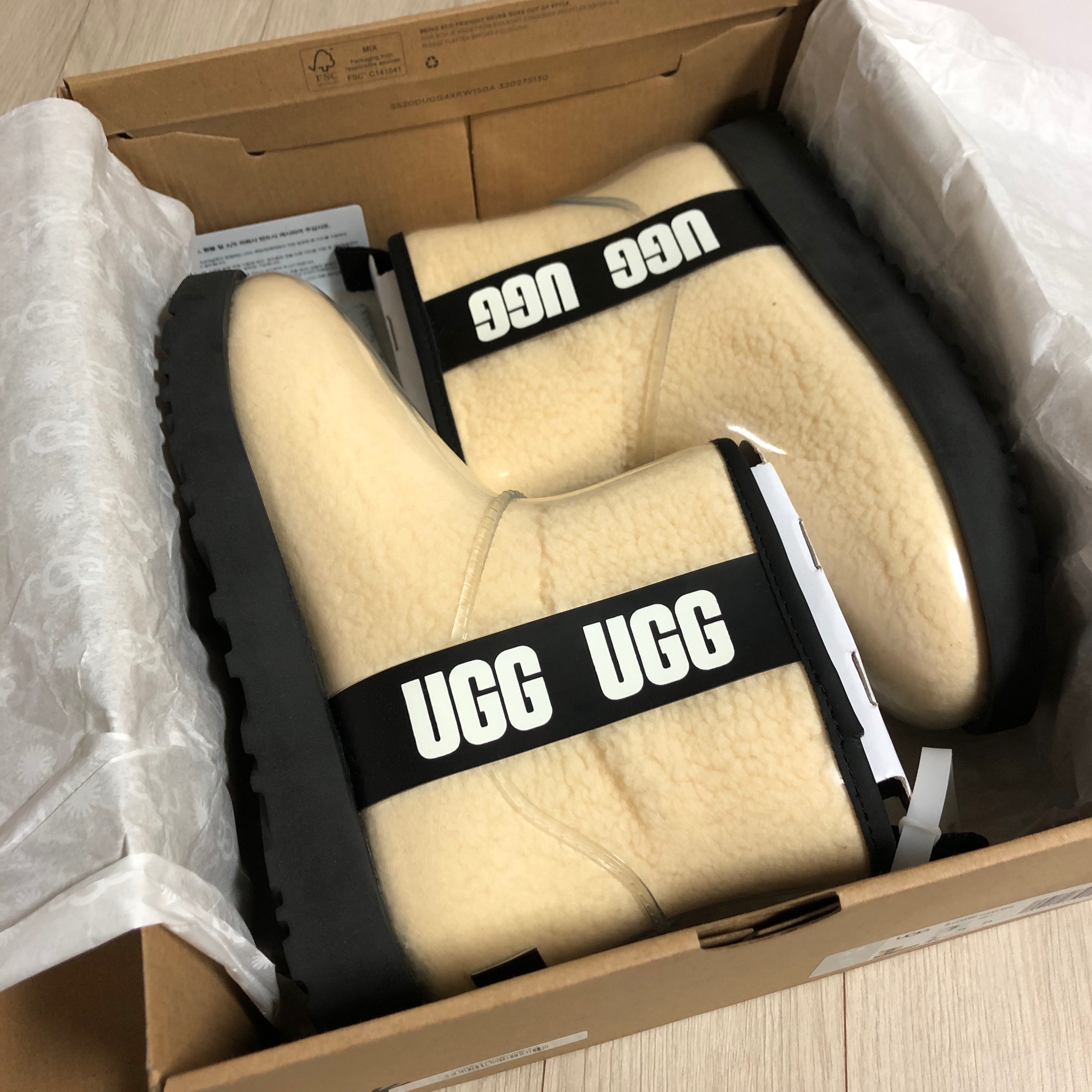 저는 아이보리 컬러를 구입했습니다. 국내 백화점이나 온라인에 나와있는 컬러는 아이보리, 블랙, 아쿠아 3종류가 있는데 핑크와 라임 컬러도 해외구매에서는 보이는 것 같습니다. 블랙 컬러도 예뻤는데 아이보리가 이 디자인의 어그부츠를 제일 돋보여주는 것 같아 취향대로 아이보리로 직진했습니다. 그리고 아이보리는 겉면의 PVC 광택의 느낌을 더 극대화 시켜주기 때문에 더욱 예쁜 것 같습니다.