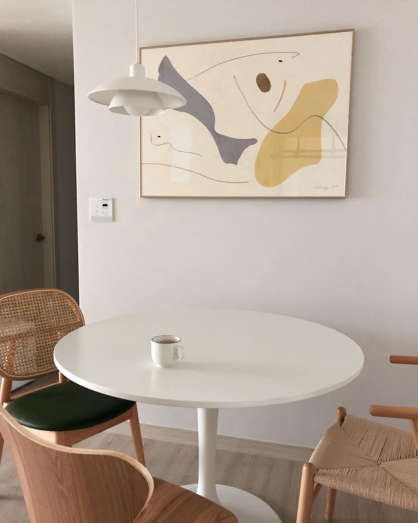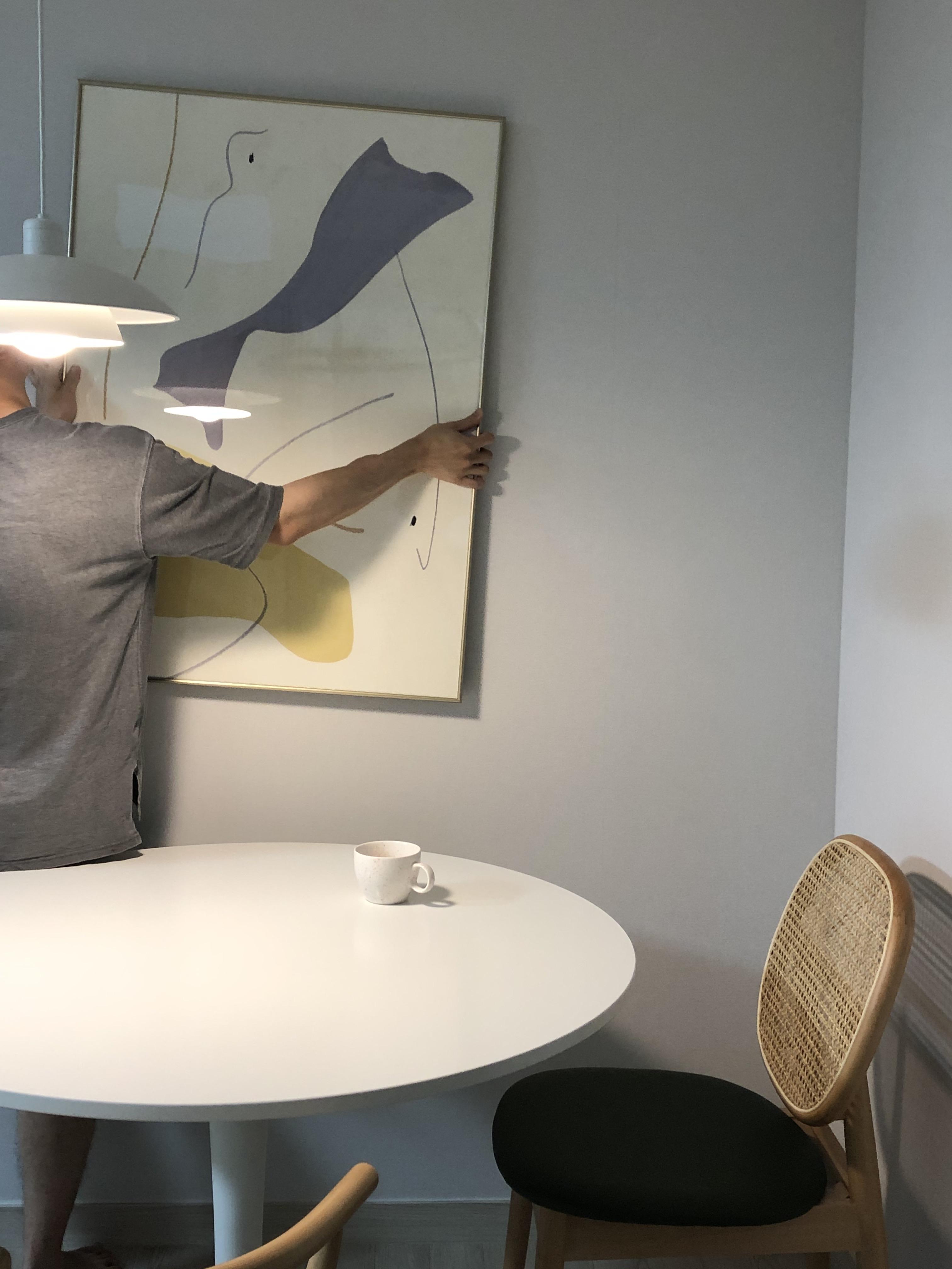다이닝룸은 어떻게 인테리어를 할까에 대핸 고민을 많이 했었습니다. 보통 액자의 경우 거실에 액자를 많이 두던데 저는 식탁 자리에 내 취향의 감성 가득한 액자를 걸어 깔끔한 다이닝룸의 포인트를 완성시키고 싶었습니다.